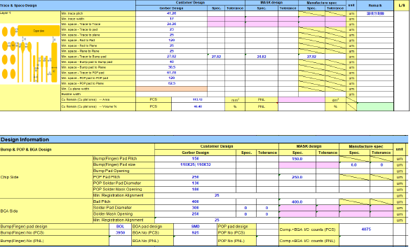 - 將客戶之原始資料做DRC分析依廠內各製程能力考量作為製造之標準。